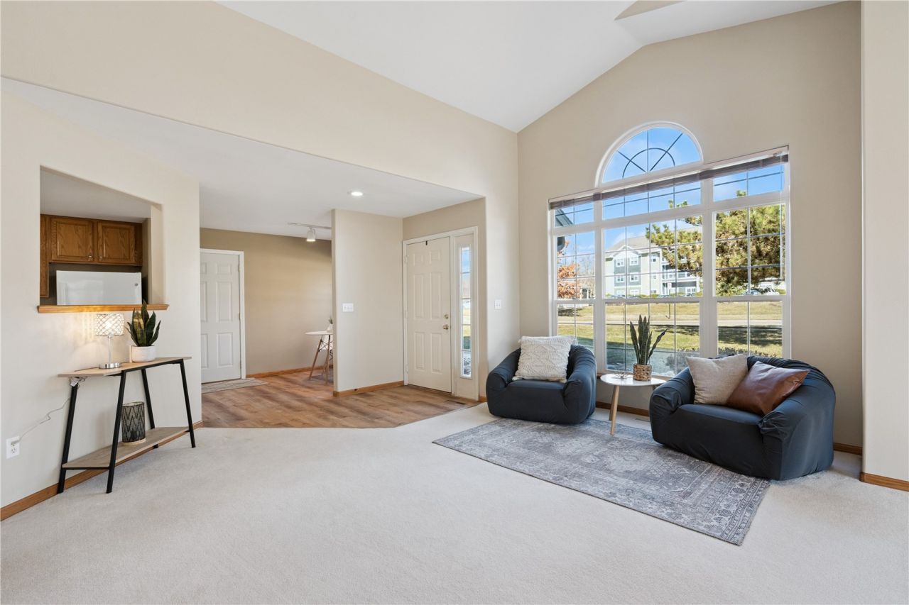 Zero-entry condo offering comfortable, low-maintenance living with a spacious and functional layout. This home features 2 bedrooms, 2 full bathrooms, PLUS a versatile bonus room ideal for a nursery, office, den, study, or guest space. The large living room showcases vaulted ceilings and massive windows, creating an open, airy feel and filling the space with natural light. The layout flows into a dedicated dining area and large open kitchen, providing great space for everyday living or entertaining. Additional highlights include a laundry/mechanical room and an oversized 2-car garage offering ample storage. Per association, rentals are allowed. Up to 2 pets permitted (dogs, cats, or customary birds), with no more than 1 dog and no pet over 20 lbs. A great opportunity for convenient condo living with flexible space.
