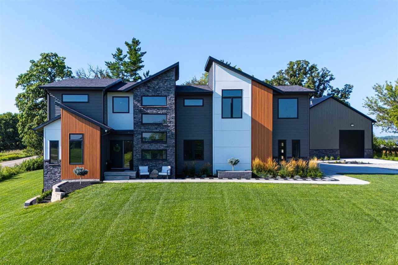 Luxury modern living with country views in this 3,730 sq. ft. two-story home, perfectly situated on an expansive acreage. This nearly new construction property that features 6 bedrooms (or 5 bedrooms and an office), 4 baths, and high-end finishes throughout is just minutes from town with all the beauty of the country. Step inside to a grand two-story foyer that welcomes you into the home's open and airy layout. The breathtaking two-story living room features soaring ceilings, a cozy fireplace, electric powered blinds, with the standout custom metal staircase. The gourmet kitchen is a chef's dream, with views of the countryside out the window, featuring quartz countertops, GE Profile appliances, and a spacious walk-in pantry. A luxurious master suite provides a relaxing retreat, complete with a spa-like soaking tub. With 9-foot+ ceilings on the main floor and 9-foot ceilings in the basement this home offers an expansive and inviting feel. A standout feature is the 40'x72' detached outbuilding, designed for both recreation and functionality. It boasts volleyball, basketball, and pickleball lines, built-in speakers, a full bathroom, loft storage, and potential office space. Your dreams become reality here in this most sought-after area of Johnson County.